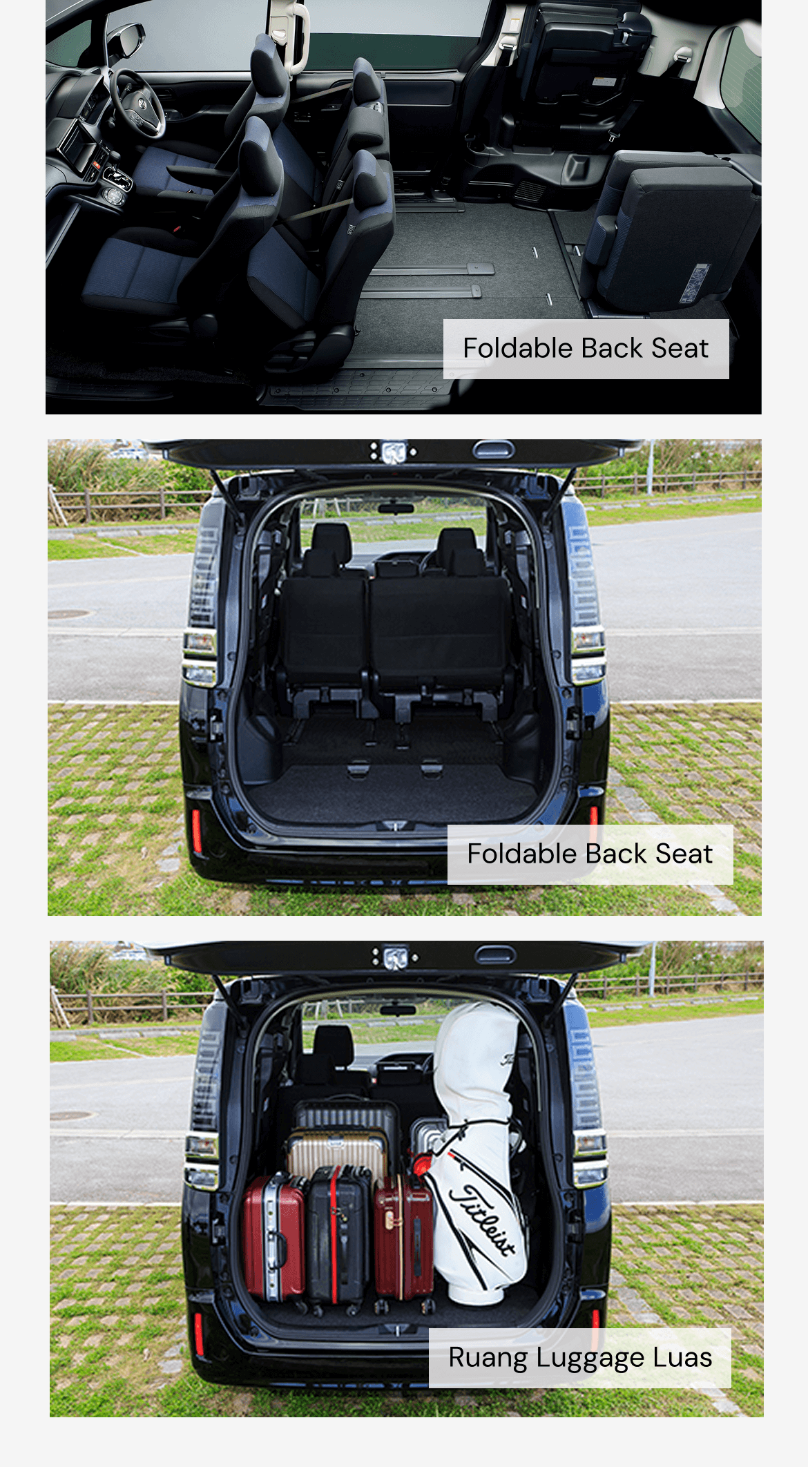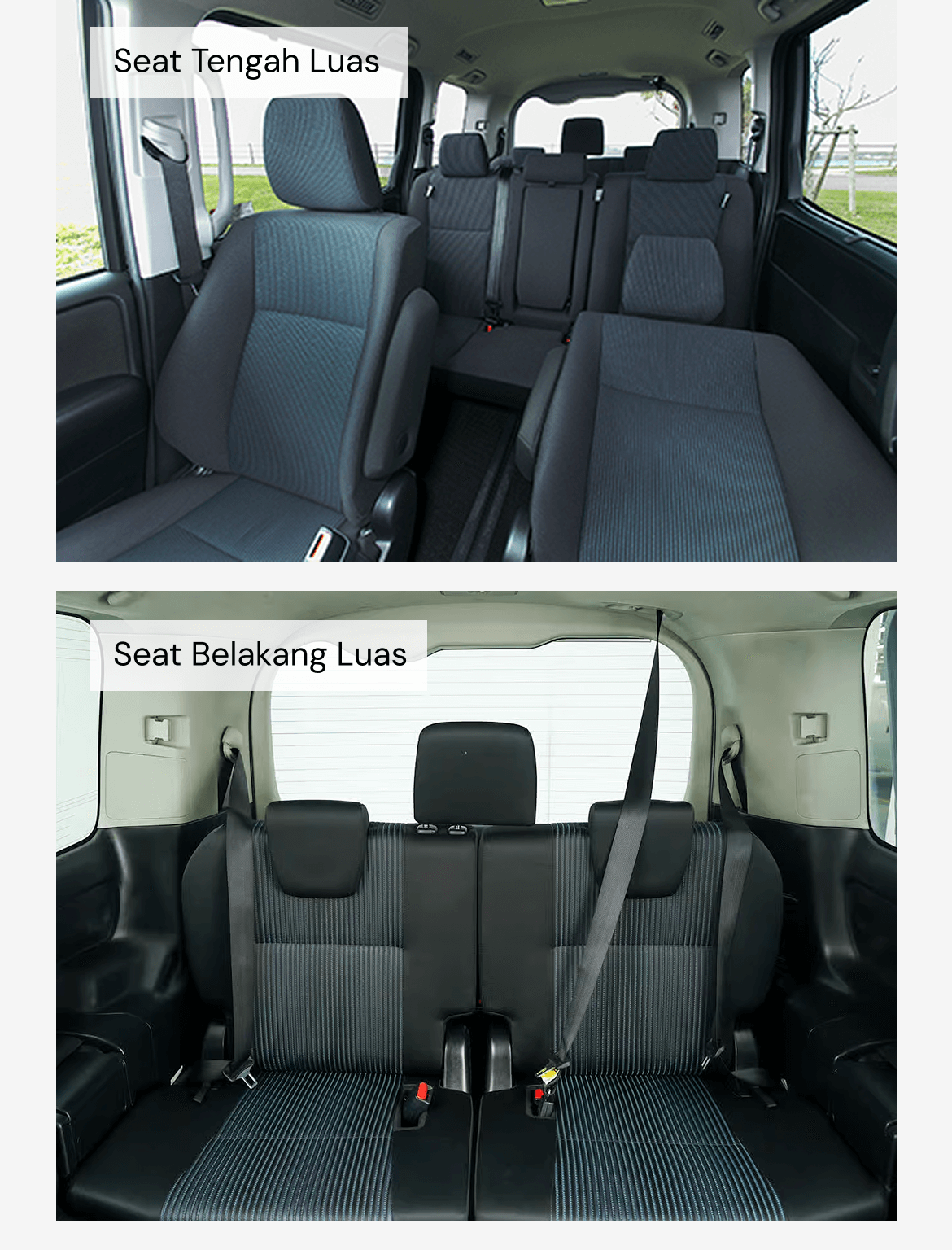 Toyota Voxy 8 Seater ni memang spacious! Kalau anda full house 8 orang, luggage yang gedabak besar tu mungkin kena pandai-pandai susun sikit. Tapi kalau luggage biasa-biasa, insya-Allah muat je. Kalau kurang dari 8 orang, senang cerita, boleh lipat je kerusi tu untuk ruang barang lebih.